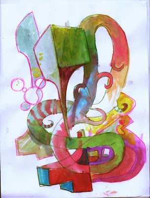 an experiment with acrylic paint over a drawing